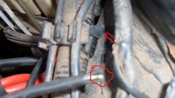 Das Kabel ist dann am Motorblock verschraubt.
