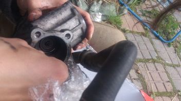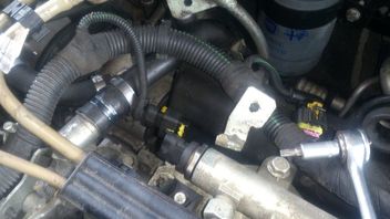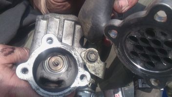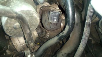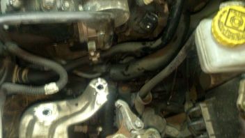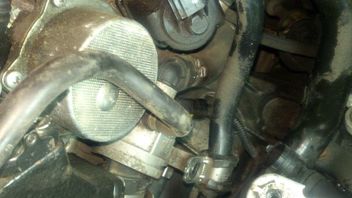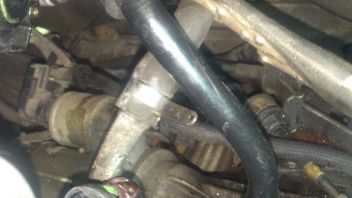 Jetzt die 2 langen Torxschrauben lösen, die das EGR am Motorblock festhalten. Da das AGR mit Kühler ist, muss ich auch die Kühlung abklemmen. Damit man nicht die Kühlflüssigkeit komplett ablassen muss, kann man die Heizung im Auto auf kalt stellen, dadurch wird das Ventil geschlossen. Dann den rueckgehenden Heizungsschlauch quetschen und den Schlauch zum AGR vom Thermostat abziehen und schnell mit z.B. 'ner kleinen Zip-Tüte und einem Haargummi das auslaufende Rohr vom Thermostat verschließen.