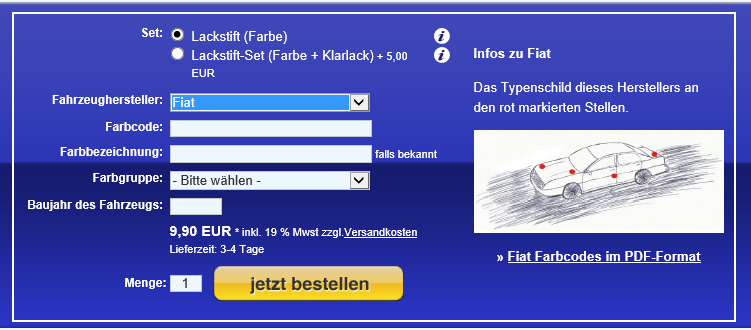 bin zum händler gefahren und habe ihn gebeten, mir einen originalen ausbesserungsstift zu bestellen.