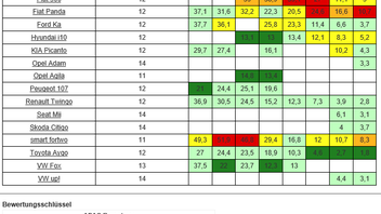 Die baugleichen Modelle Citroen C1, Peugeot 107 und Toyota Aygo wie auch die Gleichmodelle des VW-Konzerns Skoda Citigo, Seat Mii, VW Up!, liefern ebenso wie Opel Agila, Renault Twingo, und VW Fox, ein durchgängig gutes Bild ab. Bekannte Sorgenkinder sind und bleiben Fiat 500 und Fiat Panda. Der Smart fortwo schneidet etwas besser ab als in der Pannenstatistik des Vorjahres, kommt aber über eine nur durchschnittliche Pannensicherheit nicht hinaus.