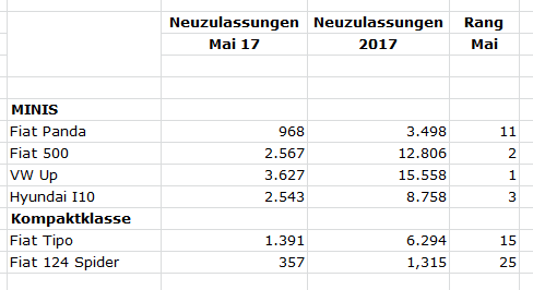 Fiat 500 behauptet den 2. Platz! Fiat Tipo verpasst nur knapp die Gesamtzulassung-