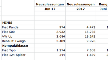 Der Fiat 500 holt sich bei den Minis wie üblich den 2. Platz, der Panda jetzt unter den Top 10 bei den Minis.