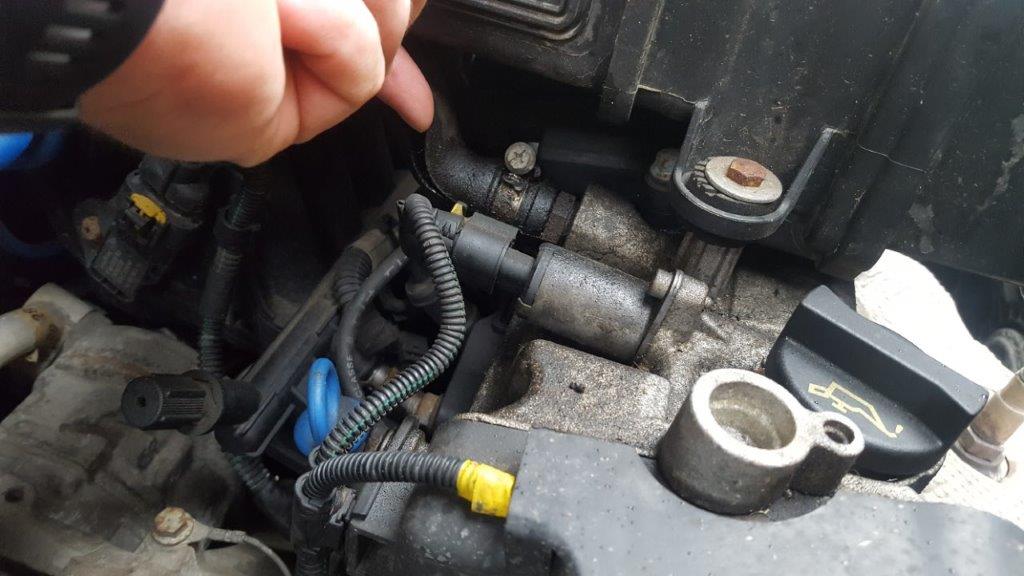 Der Schlauch sitzt links unterm Luftfilter und geht Richtung Drosselklappe.