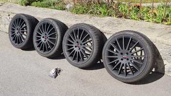 Zwei Felgen haben Bordsteinschäden, welche ich aber optisch mit schwarz mattem Hochtemperaturlack ausgebessert habe.