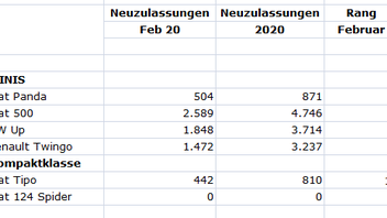 Der Fiat 500 auch im Februar auf Platz 1 im MINI Segment, der Fiat Panda