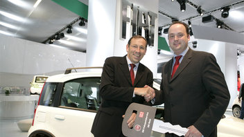 Die Fiat Group Automobiles Germany AG und die DB Fuhrpark-Service wollen Ihre Partnerschaft verstärken. Dies wurde bei einem Treffen von Vertretern beider Unternehmen auf der 62. IAA verabredet. Exemplarisch für die bereits bestehenden guten Beziehungen übergab Steffen Dittmar, Direktor Großkunden / RaC / Gebrauchtwagen bei der Fiat Group Automobiles Germany AG, an Rolf Lübke, Geschäftsführer von DB Fuhrpark, die Schlüssel für 30 an das Unternehmen gelieferte Fiat Panda.