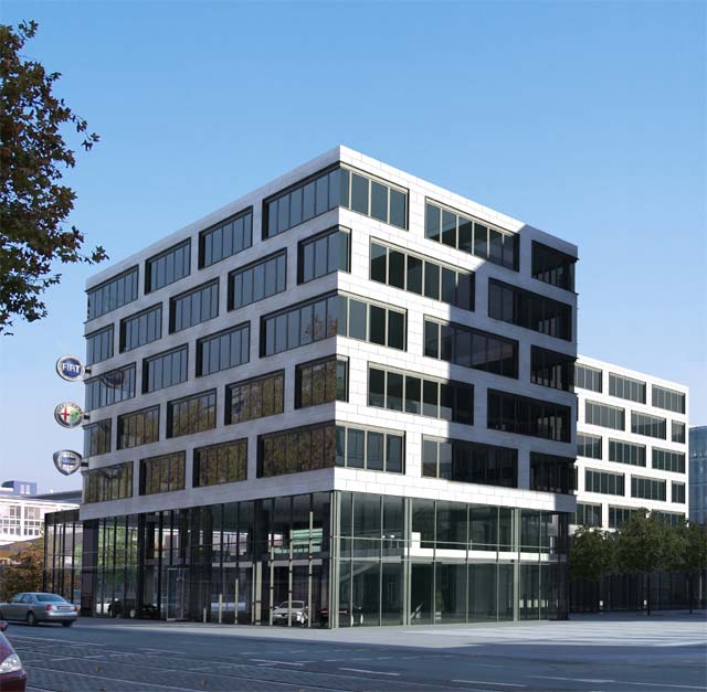 Die neue Zentrale an der Hanauer Landstraße – ein Objekt des Investors LHI Leasing GmbH, München - verfügt über eine Bürofläche von ca. 6000 qm und Schauflächen von 800 qm. Durch die Zusammenführung der bisherigen Standorte in diesen Komplex erreicht die Fiat-Gruppe eine Optimierung der bislang angemieteten Flächen und hieraus resultierend auch eine Kostenreduktion. Verbessert wird zudem die interne Kommunikation durch kurze Wege und offene Büros.