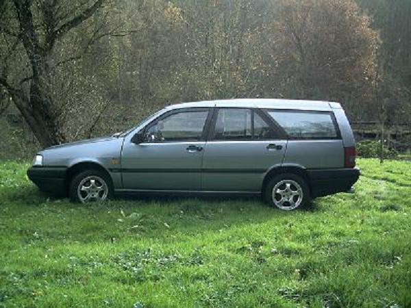 Es handelt sich dabei um einen 91er Tempra 1.6 Sportswagon ( Stationwagon ? ) in einem seltsamen Lichtgraublau-Metallic mit leichtem Anflug von Beulenpest und Patina.