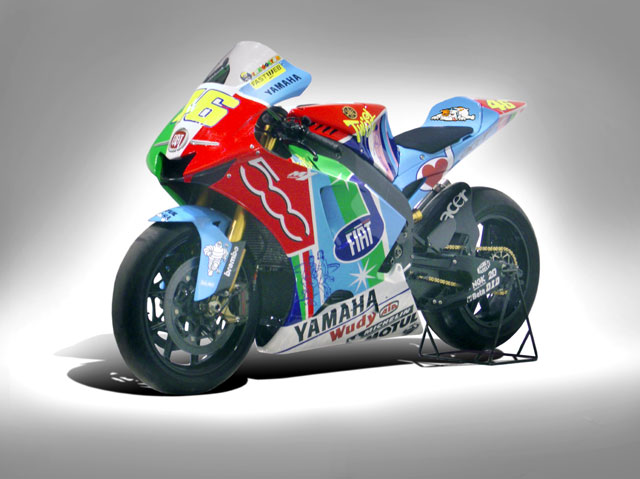 Große Aufmerksamkeit weckten die beiden Werks-Yamaha ohnehin durch die im Verlaufe des Jahres wechselnde Lackierung. Im Mittelpunkt standen dabei der im Sommer 2007 neu eingeführte Fiat 500 sowie der Relaunch der Marke Abarth. Der für die traditionell mit Fiat eng verbundene Tuningfirma typische Skorpion zierte beispielsweise beim Großen Preis von Australien in Philip Island die Maschinen und die Overalls von Valentino Rossi und Teamkollege Colin Edwards. Beim GP Niederlande in Assen trat das Yamaha-Werksteam ganz in knallbunten Farben des Fiat 500 an. Zuletzt staunte Rossi auf der Bologna Motorshow über einen exklusiven Fiat 500, der im für den Italiener typischen lebhaften Design lackiert war und außerdem auf der Motorhaube dessen legendäre Startnummer 46 trug.