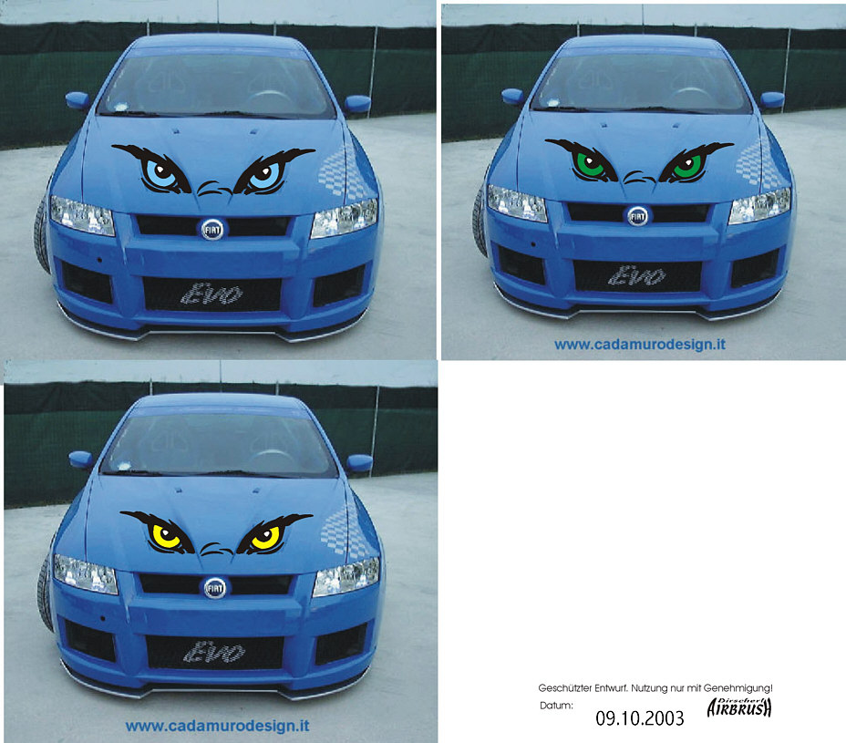 ich will ja eins auf meinem stilo auf die motorhaube: augen im cel-shading-comic look. pupillen wenn möglich in effektlack.