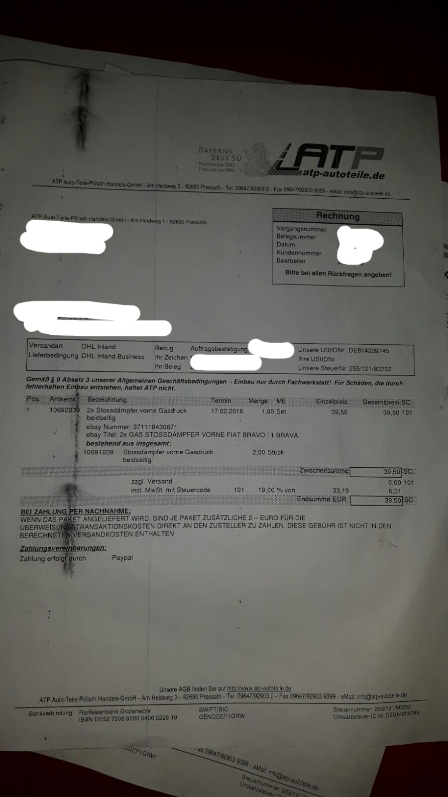 Nunja, woran erkennt man dies? Ich hatte beide Dämpfer (Alt und Neu) nebeneinander gestellt und die waren identisch von den Maßen her. Wenn es ein Produkt ist, welches einfach z.B. über Holland kommt, dann kommt es nicht selten vor das die andere Farben verwenden, wurde mir gesagt. Zudem sind die Dinger ja nun auch eingebaut, weswegen hier keine Rückgabe oder so in Betracht kommen würde. Laut Rechnung sind es die normalen Stoßdämpfer (wie im Anhang zu sehen). Sonst noch eine Idee?