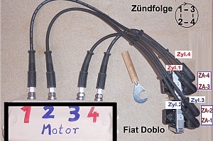 Ruck sind die Zündkabel abgezogen und ich hab mir die Anordnung nicht gemerkt. Da ich nun alles erneuern werde und nur noch auf wärmeres Wetter warte, habe ich eine Anordnung fertiggestellt mit der das rätseln nicht mehr passieren wird. Die Zündfolge bei meinem Fiat Doblo ist 1-3-4-2 verteilt auf die Doppelzündspulen Z2 und Z1.