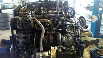 Du lässt das Auto soweit herunter, dass Motor und Getriebe auf der Werkbank aufliegt. Musst wahrscheinlich ein paar passende Holzstücke unterlegen, damit der Motor beim losschrauben nicht kippt. Dann vorderes Motorlager und Drehmomentstütze am rechten Dom losschrauben. Getriebelager vorne links weg. Und natürlich auch das untere Motorlager.