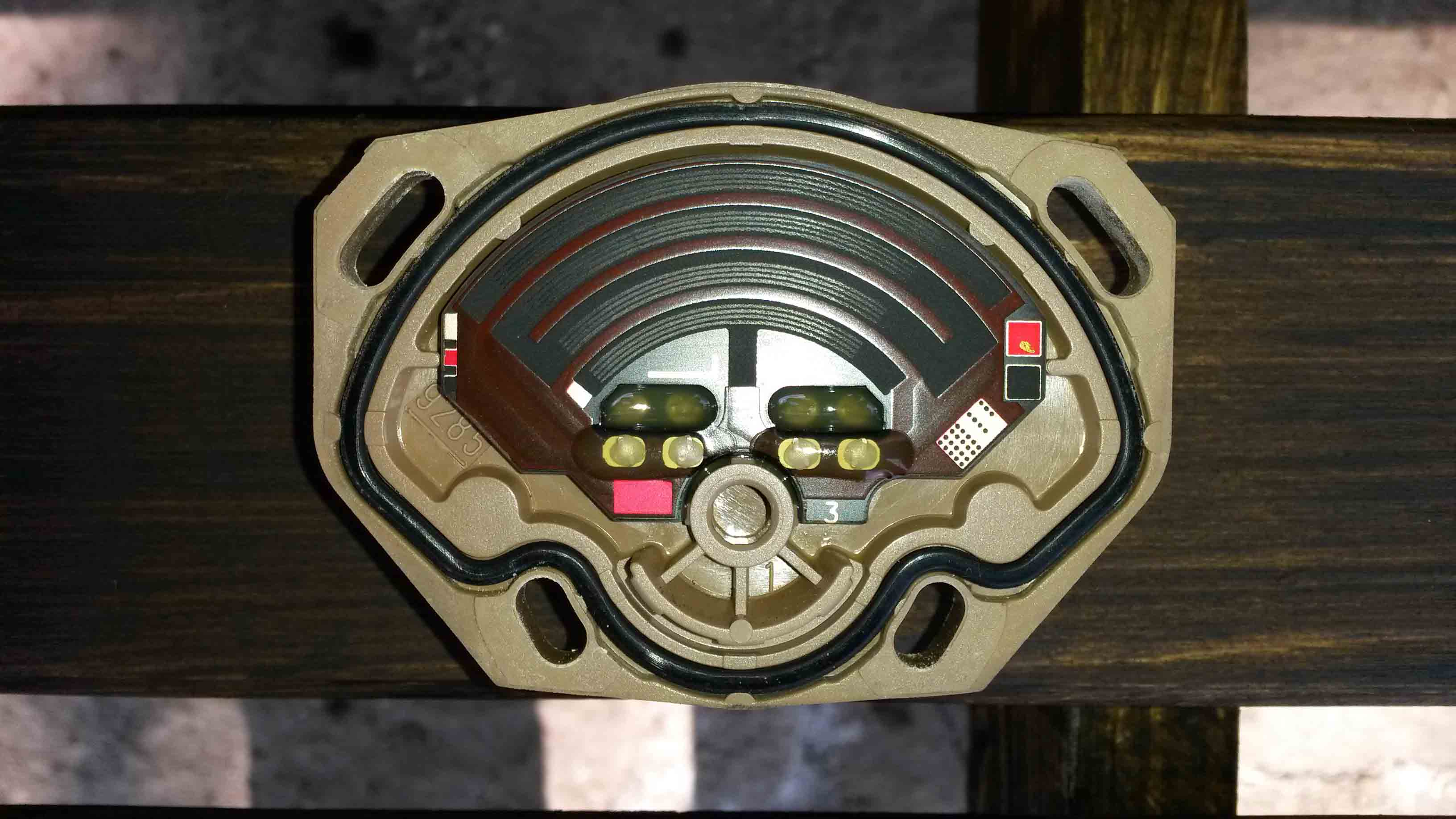 Jetzt hab ich die Vermutung das die Elektronik hinter dem beige-grauen Ding innenseitig nachgelötet werden