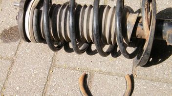 Nun habe ich, als ich mich ans wechseln des Domlagers machen wollte, entsetzt festgestellt, dass die Feder gebrochen war und auch das helle Klingeln verursacht hat, da der Stummel noch im Halteblech des Federbeins lag.