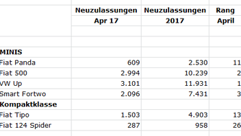 Fiat 500 auch im April auf Platz 2 im Segment der Minis.